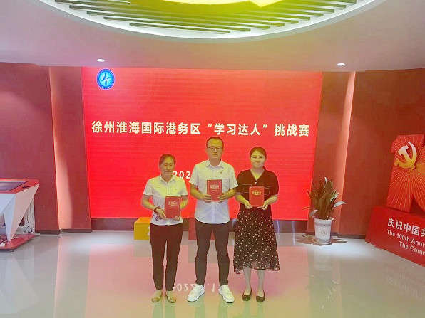 近日,徐州陸港集團(tuán)黨委組織開展了“喜迎二十大 奮進(jìn)新征程——學(xué)習(xí)達(dá)人答題挑戰(zhàn)賽”,并組織成績前三名的周廣秀、李衛(wèi)國和曹蕾三名同志作為參賽隊(duì)伍,參加徐州淮海國際港務(wù)區(qū)于8月12日舉行的“學(xué)習(xí)達(dá)人”挑戰(zhàn)賽,最終經(jīng)過兩輪比賽,參賽團(tuán)隊(duì)和選手獲得區(qū)團(tuán)體賽、個(gè)人賽雙第一的佳績。